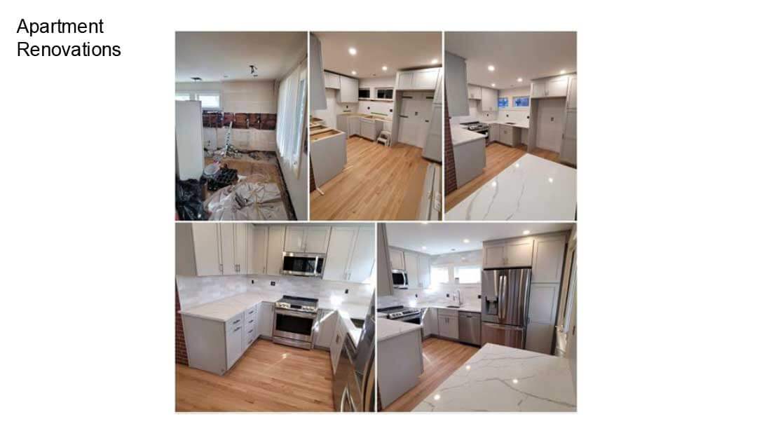 Kitchens, bathrooms, common areas, accessibility upgrades, and tenant turnover improvements.